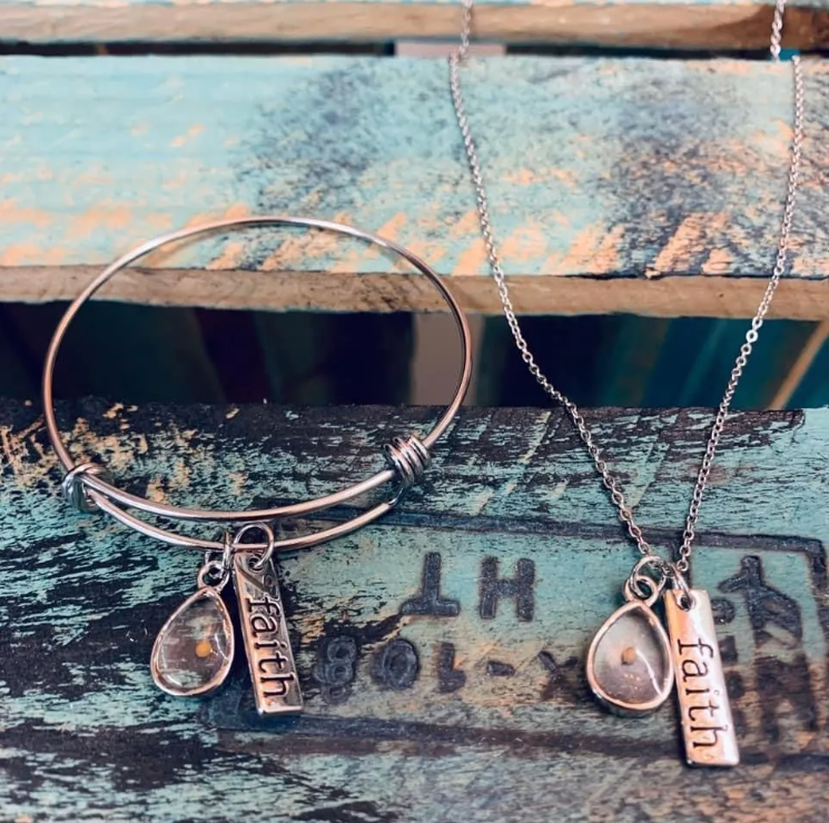 The "Mustard Seed Faith" necklace is available in both gold and silver, so you can choose the one that matches your style best.