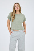 Meet your new everyday favorite. This sage acid wash crop tee brings that perfectly lived-in look with a relaxed fit that’s cute dressed up or down. Soft, breathable, and easy to style — throw it on with leggings, joggers, denim, or layer it under flannels + shackets.